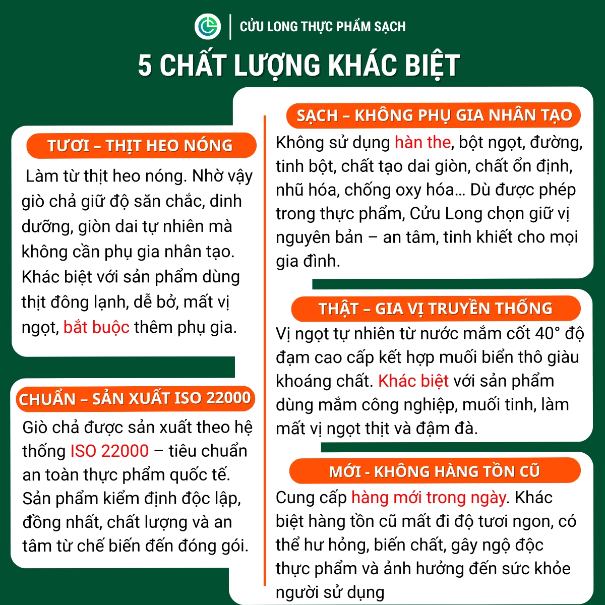 5 yếu tố Tinh Khiết độc quyền Giò Chả Cửu Long.