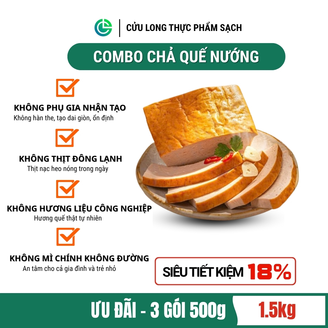 Chả Nướng Quế Cửu Long là món chả truyền thống mang đậm dấu ấn quê nhà, kết hợp giữa lớp vỏ nướng cháy cạnh thơm nức và nhân giò chả mềm mịn đậm đà. Đặc biệt, sản phẩm được quết hương quế sạch tự nhiên theo công thức riêng, tạo nên sự khác biệt nhẹ nhàng mà sâu sắc trong từng miếng chả.