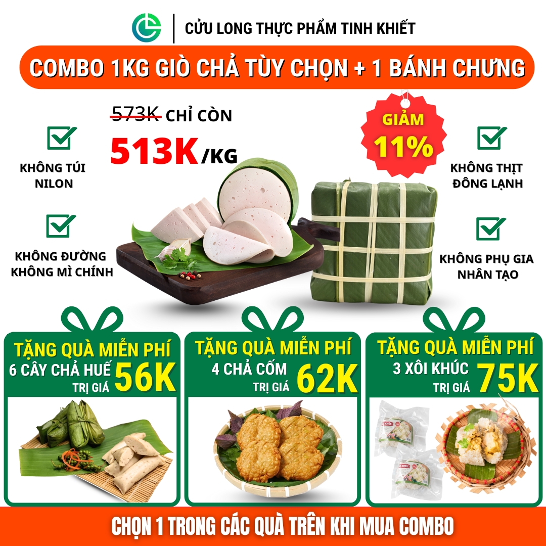 Bạn được chọn 1–2 loại giò chả bất kỳ trong các dòng sản phẩm sạch nổi bật nhất của Cửu Long như: