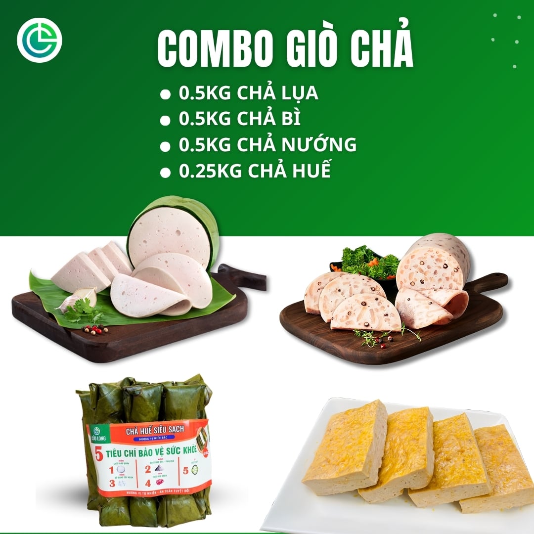 - Combo Giò Chả Ngon Cửu Long là tuyển chọn tinh hoa ẩm thực với chả lụa (0.5KG) truyền thống, chả bì (0.5KG) giòn sần sật, chả nướng hương quế (0.5KG) thơm lừng, và Giò 7 phút (chả huế 0.25KG) độc quyền. Sản phẩm được chế biến theo bí quyết gia truyền từ năm 1983, đạt chứng nhận ISO 22000, và tuân thủ triết lý "5 KHÔNG" của Ẩm Thực Cửu Long: không túi nilon, không phụ gia nhân tạo, không dùng nước mắm giá rẻ, không thịt nạc đông lạnh, không bán hàng tồn cũ. Đây là lựa chọn đáng tin cậy cho bữa ăn sạch, ngon miệng, phù hợp với chế độ ăn sạch cho gia đình và trẻ nhỏ, đặc biệt tại TP. Hồ Chí Minh và trên toàn quốc, đồng thời khơi gợi niềm vui từ hương vị độc quyền.