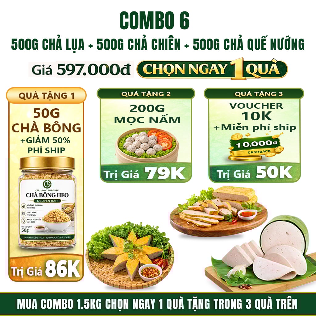 Với mức ưu đãi hấp dẫn, giảm từ 559.000đ nay chỉ còn 447.000đ (tiết kiệm 112.000đ), cùng món quà tặng kèm, combo này là cơ hội để bạn đầu tư vào sức khỏe và niềm vui gia đình, nâng tầm trải nghiệm ẩm thực hàng ngày. Hãy cùng Ẩm Thực Cửu Long khám phá hành trình kiến tạo những giá trị bền vững, và hiểu vì sao chúng tôi là thương hiệu tiên phong trong việc mang đến giò chả thành phần tự nhiên, đạt chuẩn quốc tế tại Việt Nam.