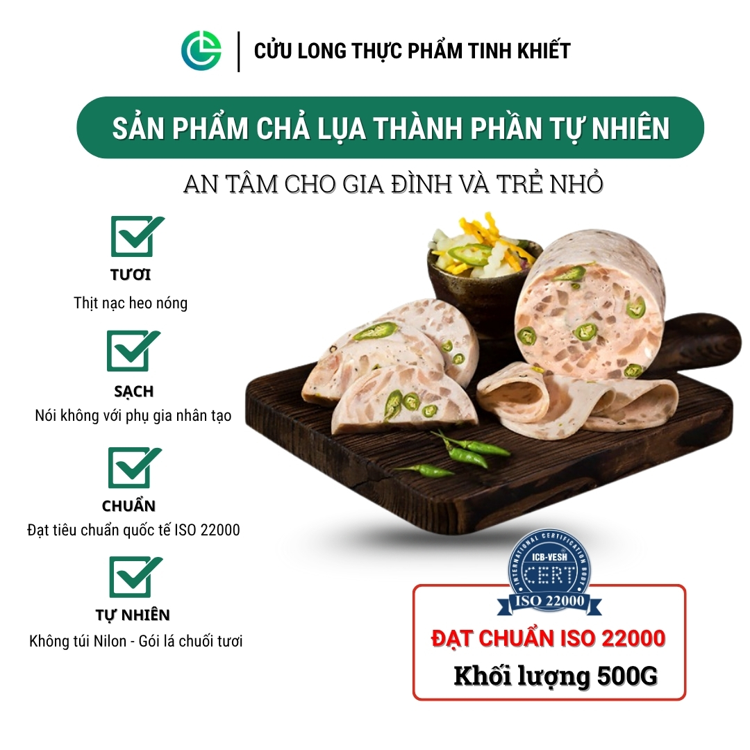 - Combo Giò Chả Ngon Cửu Long mang đến giải pháp ẩm thực toàn diện với chả lụa (1KG) truyền thống và chả bì (0.5KG) giòn sần sật, cùng quà tặng hấp dẫn.. Sản phẩm được chế biến theo bí quyết gia truyền từ năm 1983, đạt chứng nhận ISO 22000, và tuân thủ triết lý "5 KHÔNG" của Ẩm Thực Cửu Long: không túi nilon, không phụ gia nhân tạo, không dùng nước mắm giá rẻ, không thịt đông lạnh, không bán hàng tồn cũ. Đây là lựa chọn đáng tin cậy cho bữa ăn sạch, ngon miệng, phù hợp với chế độ ăn sạch cho gia đình và trẻ nhỏ, đặc biệt tại TP. Hồ Chí Minh và trên toàn quốc.