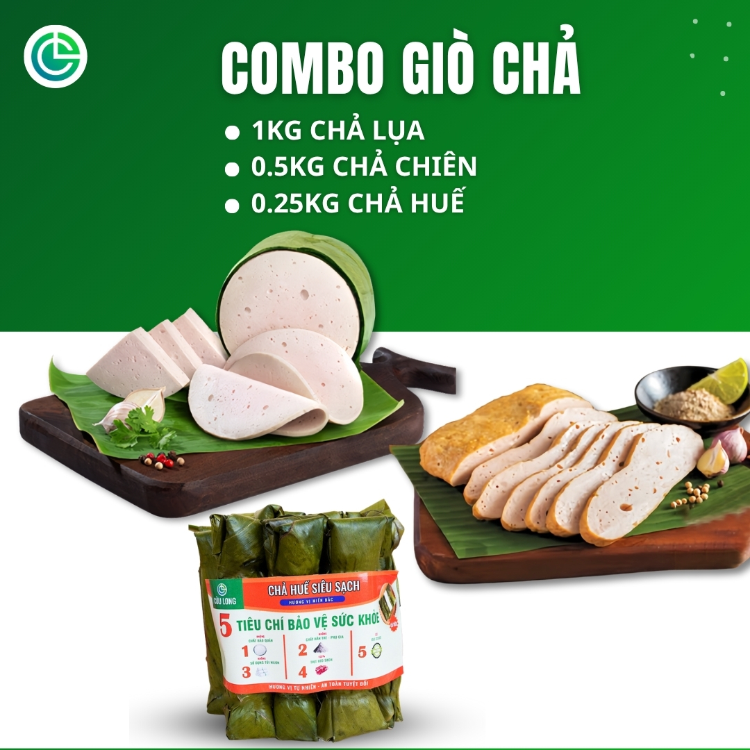 - Combo Giò Chả Ngon Cửu Long là tuyển chọn tinh hoa ẩm thực với chả lụa (1KG) truyền thống, chả chiên (0.5KG) vàng giòn, và chả huế(0.25KG) đậm đà. Sản phẩm được chế biến theo bí quyết gia truyền từ năm 1983, đạt chứng nhận ISO 22000, và tuân thủ triết lý "5 KHÔNG" của Ẩm Thực Cửu Long: không túi nilon, không phụ gia nhân tạo, không dùng nước mắm giá rẻ, không thịt nạc đông lạnh, không bán hàng tồn cũ. Đây là lựa chọn đáng tin cậy cho bữa ăn sạch, ngon miệng, phù hợp với chế độ ăn sạch cho gia đình và trẻ nhỏ, đặc biệt tại TP. Hồ Chí Minh và trên toàn quốc, đồng thời khơi gợi niềm vui từ hương vị truyền thống.