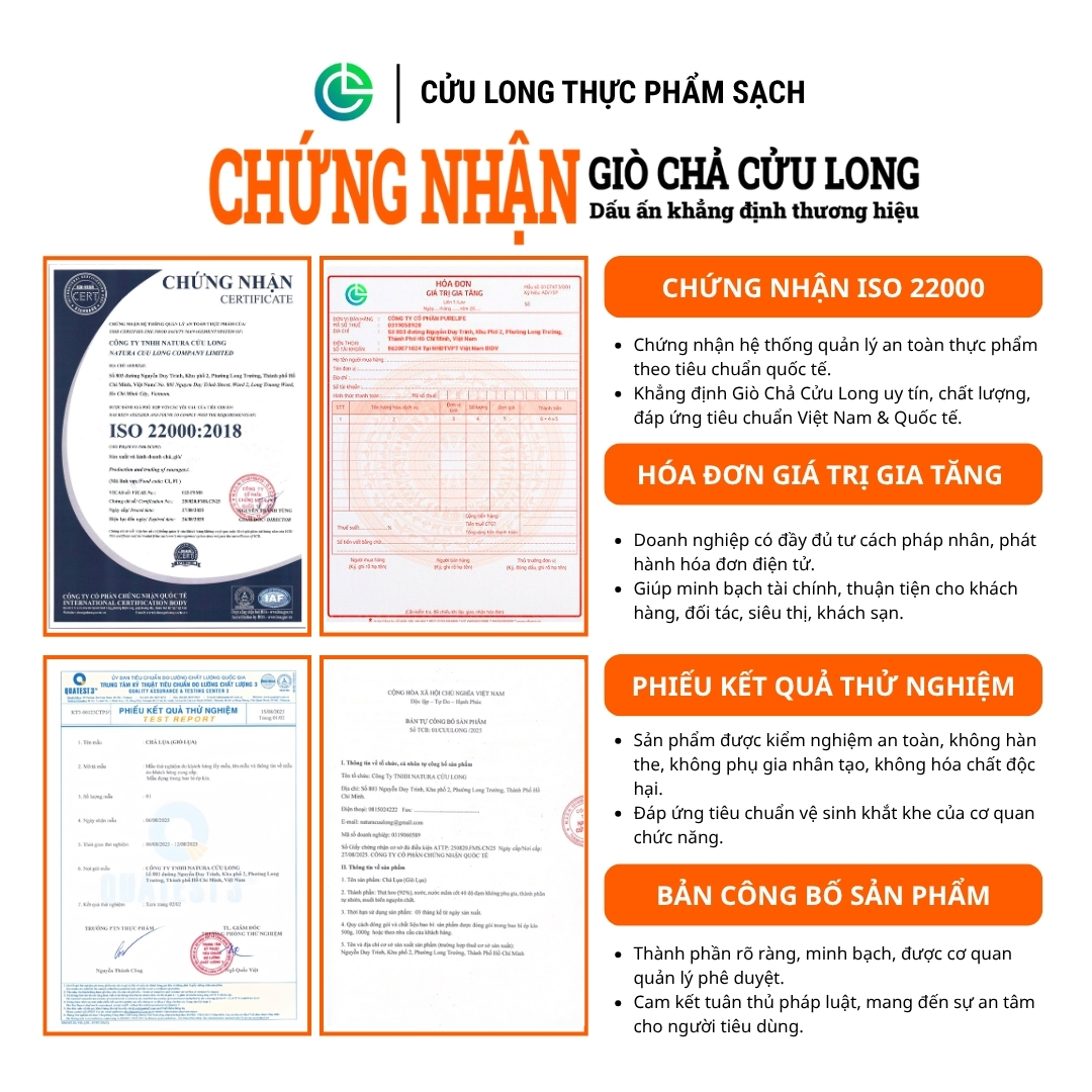 - Minh Bạch Giấy Tờ: Công ty khẳng định Độ Tin Cậy bằng việc cung cấp đầy đủ giấy tờ pháp lý, bao gồm chứng nhận ISO 22000, phiếu kết quả kiểm nghiệm độc lập, hóa đơn VAT, và hồ sơ công bố sản phẩm đầy đủ.